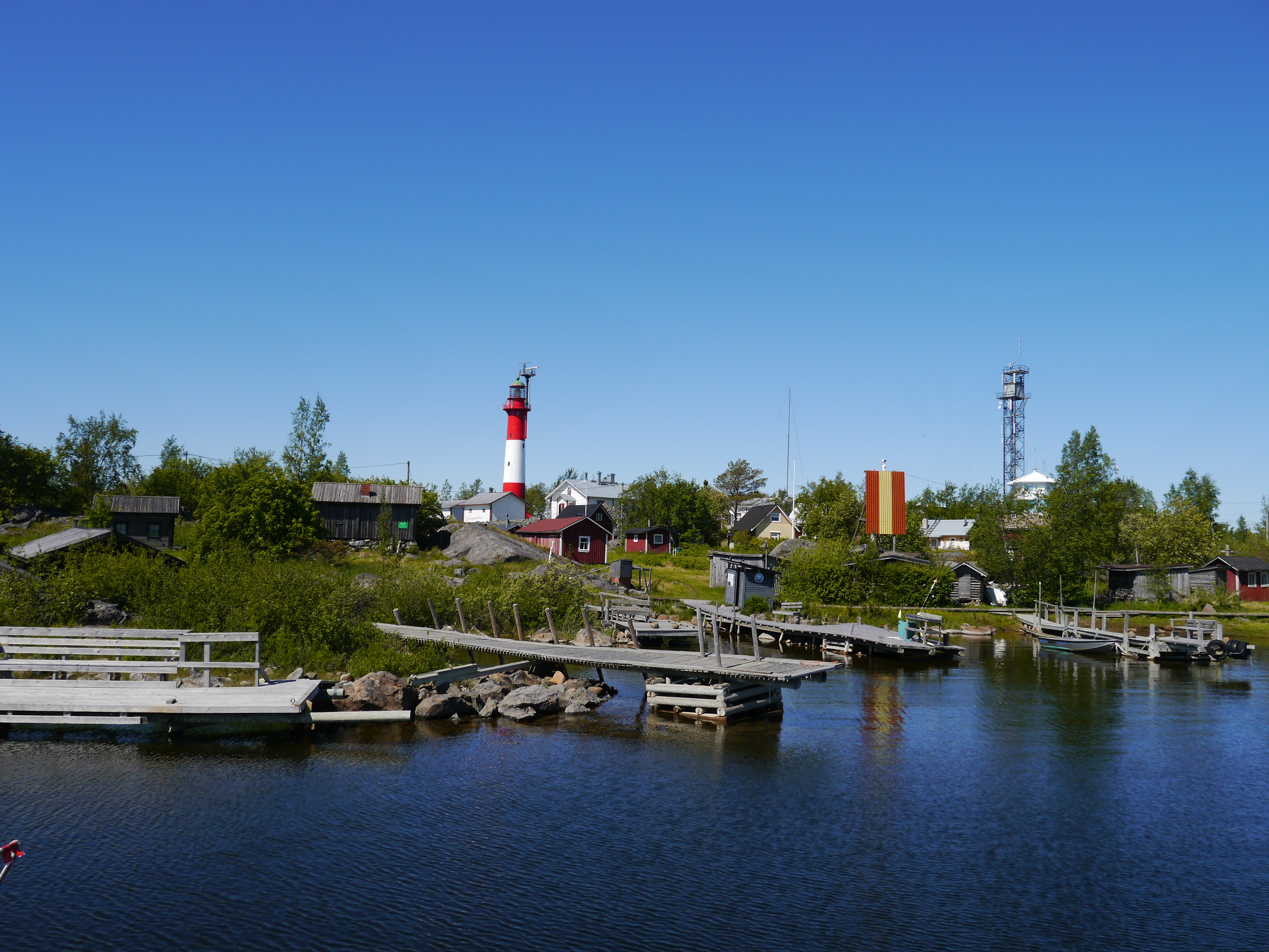 21.06.15 – Kemi – endlich mal wieder ein Lebenszeichen von uns. Ein Tiefdruckgebiet, diesmal nicht am Himmel, sondern im Schiff, verhinderte die Einträge hier. Hajo und ich hatten ein Tief. Beständiger Nordwind mit ruppiger Welle reduzierten die Segelmeilen erheblich. Wir mußten ständig gegenan motoren. Der eisige Nordwind und die ständige Nässe von unten und oben drückten erheblich auf unser Gemüt. Die eintönigen Küstenabschnitte mit Birken und Kiefernbewuchs luden wegen der sehr hohen Mückendichte nicht unbedingt zum Erkunden ein. Zu allem Überfluß entschloss sich Hajo den im Süden gemeldeten starken nordöstlichen Winden durch eine Nachtfahrt mit 96 Seemeilen zu entfliehen. So konnten wir uns die einzig schöne Insel auf diesem Abschnitt nicht anschauen…nachts um zwei, taghell, liefen wir in Raahe in einen Fischerhafen ein. Die restlichen 90 Seemeilen fuhren wir bis Kemi in drei Tagen ab. Von hier gibt es nichts Interessantes zu berichten. Probleme bereitet uns auch die ewige Helligkeit. Es ist nachts um 23.00, aber es schaut aus wie bei uns mittags um 2.00. Die Tageszeiten verschieben sich, man selber hat keinen Anhaltspunkt mehr, ob es morgens oder abends ist. Das führt dazu, das man abends zu spät ins Bett geht und morgens natürlich dann zu spät aufsteht. Um schlafen zu können, müssen wir im Schiff die Fenster dunkel verhängen.