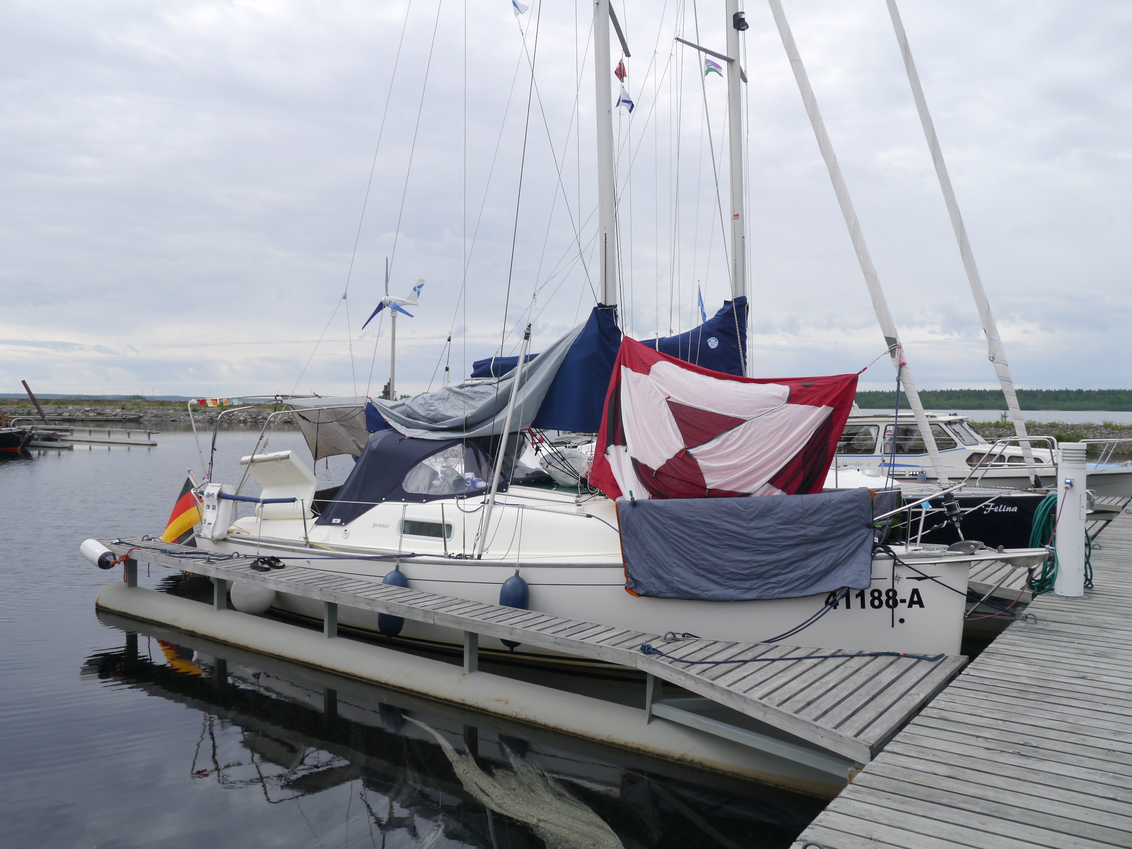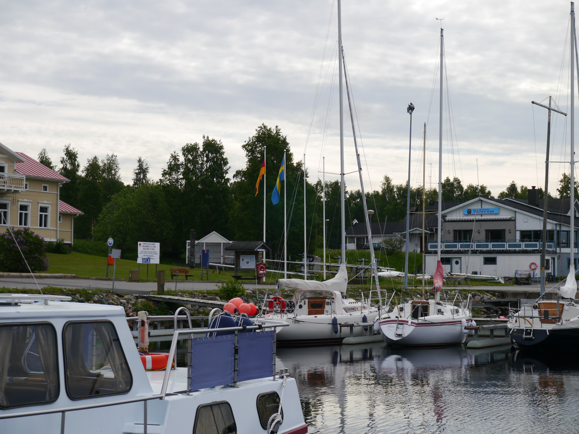 Hier in Kemi ist die Temperatur wieder ertragbar. 20 Grad und die Sonne lacht auch ab und zu. Die Hafenverwaltung hat inzwischen die deutsche Fahne aufgehängt.