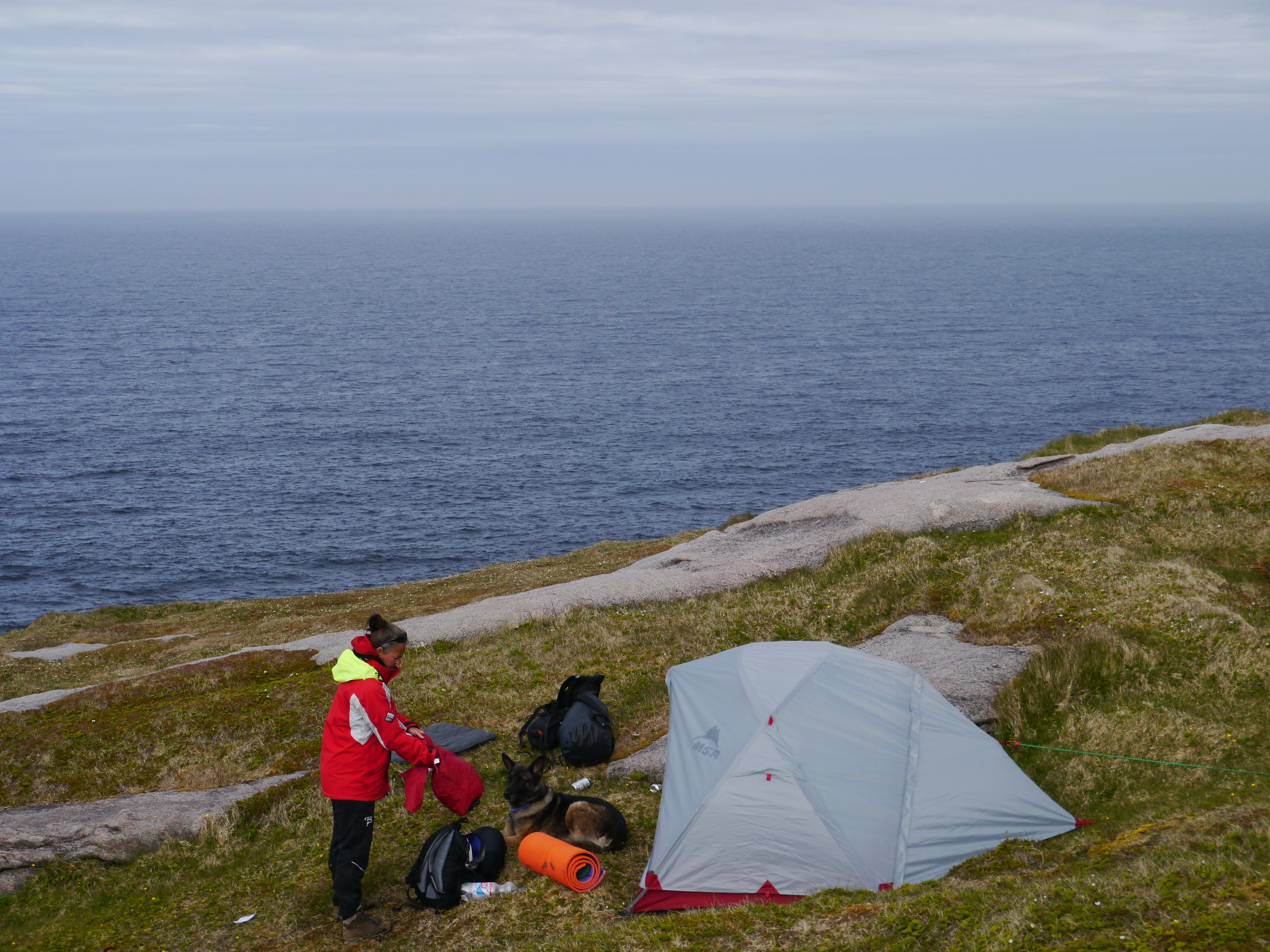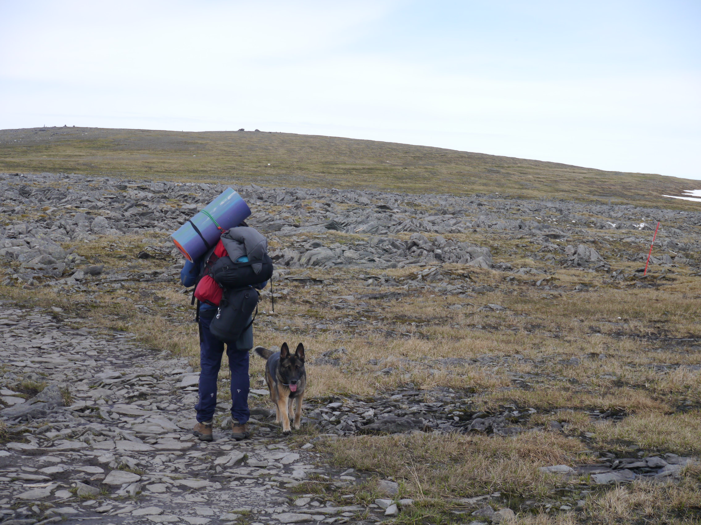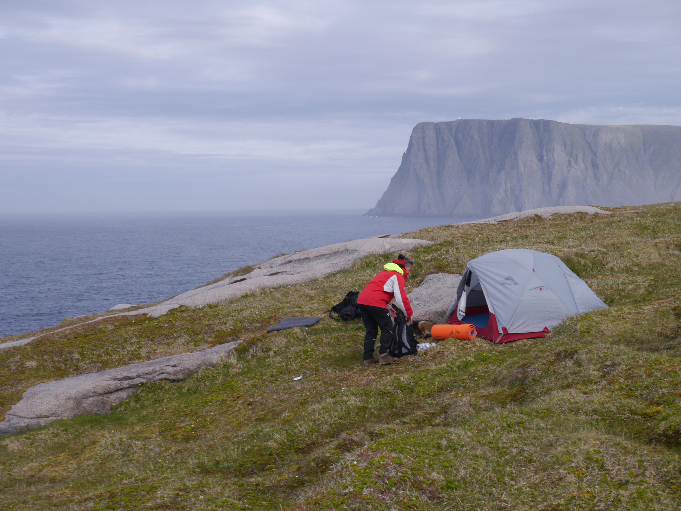 Hinter einem Stein, windgeschützt in einer kleinen Senke schlagen wir unser Nachtlager auf. Aufgrund des schwierigen Weges