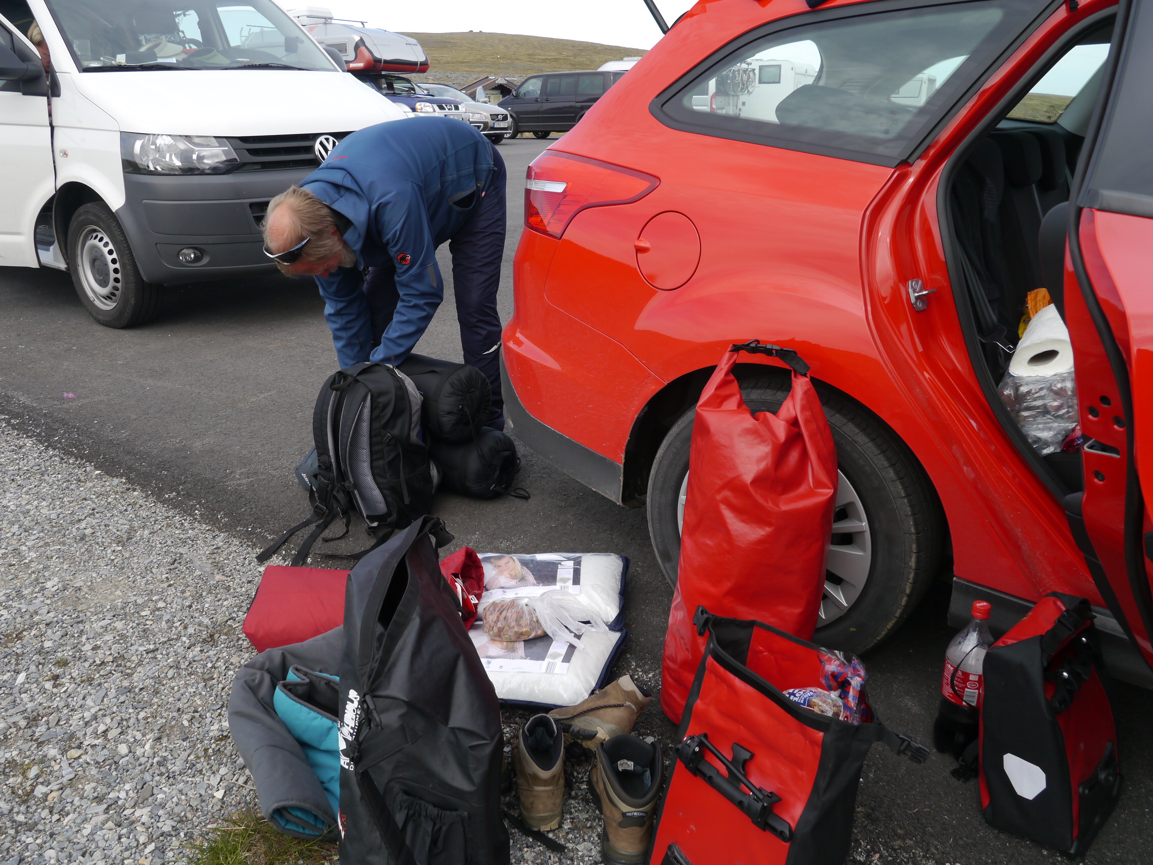 Wir packen unsere Sachen in nicht gerade geeignete Rucksäcke, aber etwas anderes haben wir nicht.