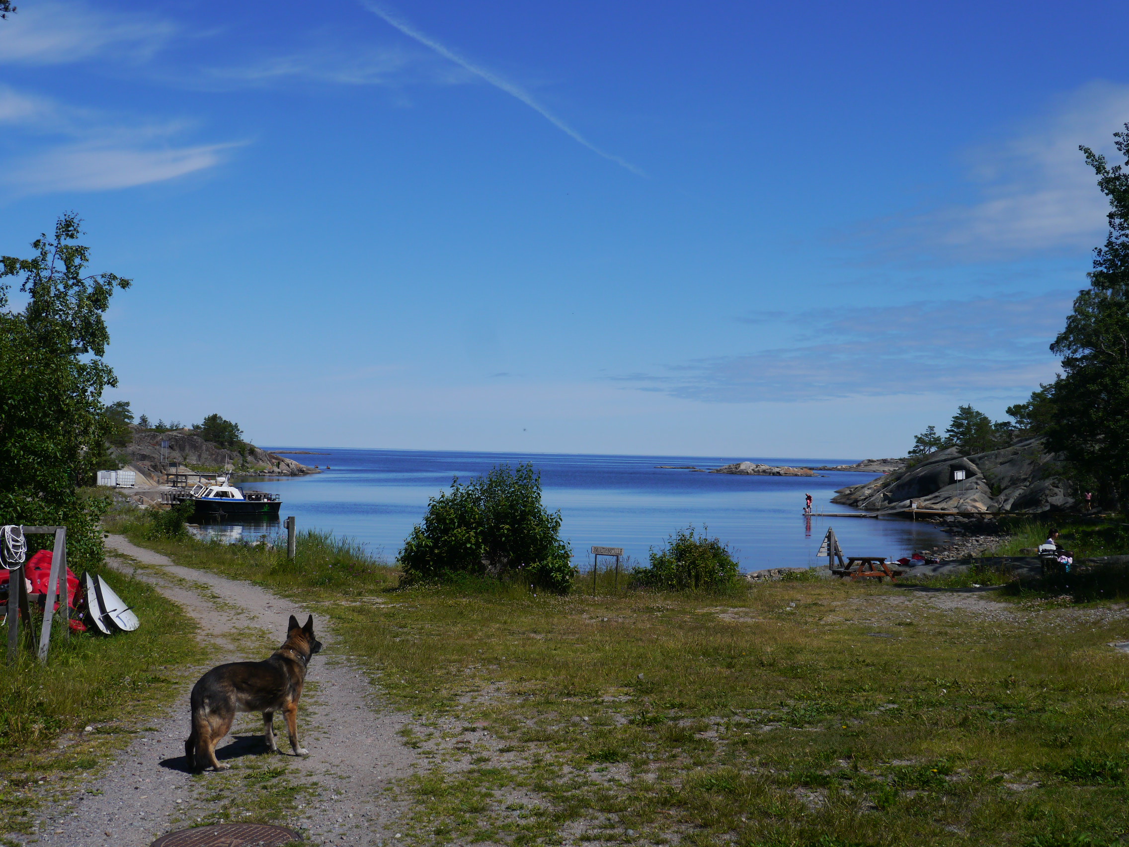 06.07. – Paradies Bucht – Lodna – Heute ist das Wetter wieder freundlich zu uns und so verlassen wir diesen wunderschönen Flecken Erde, um noch andere nette Plätzchen zu suchen. Der Wind hat sich gestern wohl verausgabt, sodass heute nicht ein Lüftchen weht und wir den Motor bitten ☺️! An der Insel Lodna in der Hemmviken Bucht fällt unser Anker. Wir gehen spazieren. Queeny freut sich über den abenteuerlichen Weg, den wir aus der Bucht ins Inselinnere gehen müssen, bis wir auf einen breiteren Weg kommen. Wir finden einen klitzekleinen Inselladen, indem ich Äpfel und Mehl kaufe…mein Kapitän hat sich einen Apfelkuchen gewünscht…🤔 Zurück an Bord backe ich sofort, natürlich im Omnia, einen Apfelkuchen!! Dann machen wir eine Lagebesprechung… Viele Dinge sprechen dafür, dass wir die Reise früher beenden sollten, als geplant… Hier beginnt jetzt die Hauptreisezeit, es wird immer voller, in kaum einer Bucht ist man noch alleine 🙁 und zuhause steht mal wieder eine Renovierung an…!
