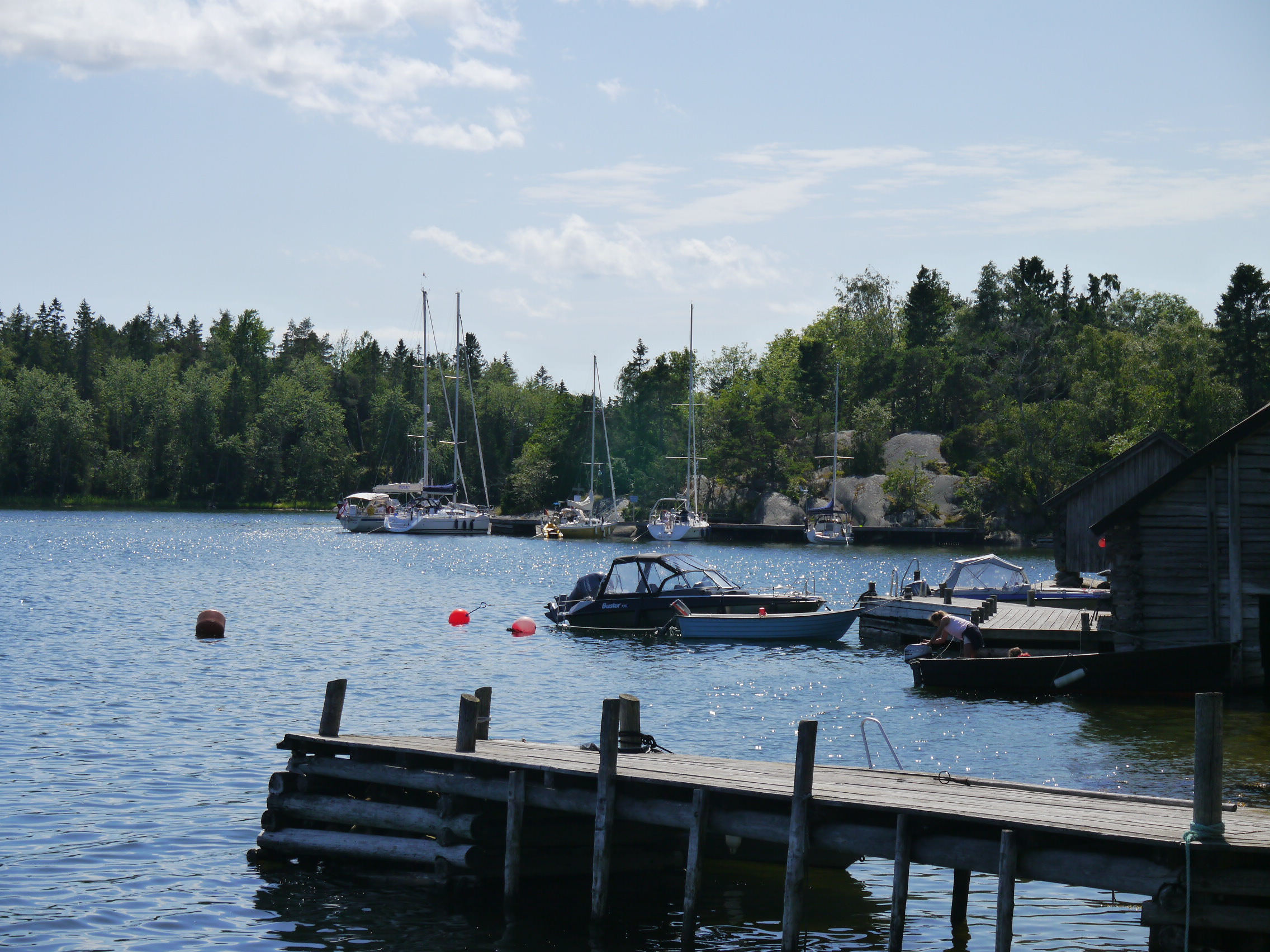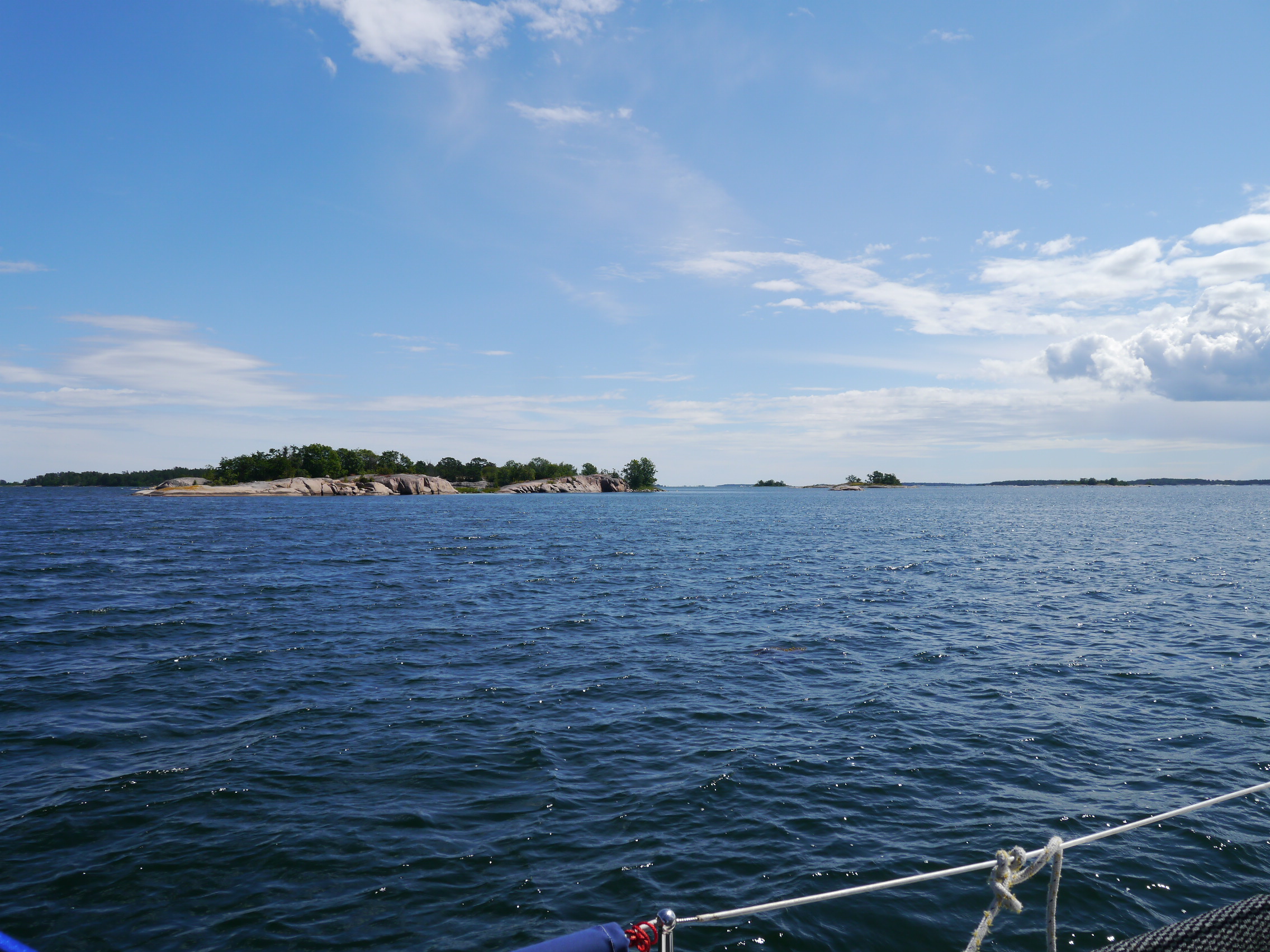 29.06. – Norrtälje – Arholma – Wir legen früh in Norrtälje ab, sind aber nicht die ersten. Am Nachmittag soll es laut Wetterbericht schon wieder ungünstigen, also Gegenanwind (wird nicht zusammen geschrieben…weiss ich selber 😛) geben! Leider ist grad gar kein Wind… 18 Seemeilen mit Motörchen. Armes Ding! Und dann die Umarmung!! Kurz vor Arholma haben wir den Kreis geschlossen!! Hier waren wir 2015 schon, somit haben wir den Bottnischen Meerbusen umrundet!! Wir freuen uns und noch mehr, nachdem wir sehen, dass am Anleger noch ein Plätzchen für uns frei ist. Der Heckanker fällt und wir machen mit dem Bug am Steg fest. Nun ist es Zeit, Rasmus für diese Umrundung zu danken! Natürlich bekommt er ein Stamperl Ramazzotti. Da es erst kurz vor zehn ist, verzichte ich darauf, mit Rasmus anzustoßen… 🤭 Zur Feier des Tages mache ich den geliebten Nudelsalat. Dazu gibt es schwedische Kötbullar. Den nächsten Tag bleiben wir auch noch hier. Wir wandern in den zwei Tagen insgesamt 16 km. Die Insel ist traumhaft schön!!