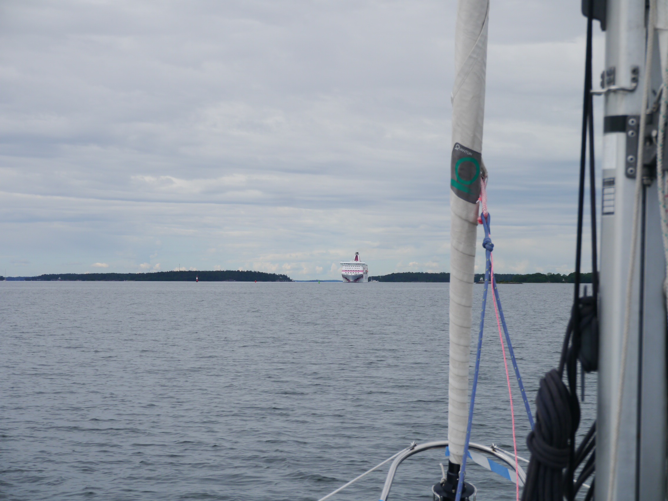 05.07. Finnhamn Paradies Bucht – Nach zwei Nächten in Kapellskär fahren wir weiter nach Finnhamn. Unser Buch beschreibt hier eine Bucht, die tatsächlich auch so heißt: Paradiset !! Da die Wetterlage im Augenblick alles andere als stabil ist, vertagen wir erstmal unser Vorhaben, auf die Außenschären zu fahren. Zur Paradies Bucht segeln wir mal gemütlich, da in Landabdeckung, dann, auf offenen Stellen, recht zügig. Die Landschaft ist sehr abwechslungsreich und traumhaft schön. Dann donnert es gewaltig und Blitze zucken am Himmel. Wir bergen die Segel und ziehen uns wasserdicht an 😤. Es regnet, aber zum Glück nicht lange. In der rundherum sehr gut geschützten Paradies Bucht ankern wir. Allein die Zufahrt zu dieser Bucht ist schon ein Paradies. Kein Haus, nur Wald und vom Eis blankpolierte Felsen. Heute gibt es Dose. Wir haben davon ein paar an Bord…die müssen auch gegessen werden. Am nächsten Tag erkunden wir die Insel. Wir sind natürlich nicht alleine in der Bucht. Es gibt hier die Möglichkeit an Felsen festzumachen und auch an einem kleinen Gästesteg mit Heckbojen. Gegen Abend studieren wir den Wetterbericht…Och nö 😐 schon wieder Sturmwarnung, diesmal 40 Knoten Wind und Regen für Freitag. Da wir überhaupt keine Lust haben bei Sturm und Regen mit dem Gassibötchen an Land zu tuckern, zumal der Außenbordmotor manchmal keine Lust hat und nicht anspringt, verholen wir uns an den Gästesteg. Dann mache ich einen Kartoffelsalat, dazu gibt es Grillfleisch aus der Pfanne. Morgens um fünf geht es dann los. Unser Boot wird hin und her geweht und ruckt so heftig in die Leinen ein, sodass wir meinen, wir sind irgendwo gegengestoßen. Auf den anderen Schiffen sind auch alle wach. Leinen werden zusätzlich ausgebracht, die Ankerlieger gehen auf Drift und müssen erneut ankern. So geht es den ganzen Tag und es regnet in Strömen. Eine kurze Regenpause um zehn nutzt Hajo schnell für die Gassirunde. Nach dem Frühstück ziehen wir uns mit einem guten Buch wieder in die Koje zurück, da es auch empfindlich abgekühlt hat. Erst gegen Abend lassen Wind und Regen nach und wir können endlich eine längere Runde spazieren gehen 😅. Nach diesem Kojengammeltag habe ich gar keine Lust zu kochen…doch mein Kapitän ist da ganz anderer Meinung! Also mache ich das, was weg muß: Kartoffeln, Paprika und Creme fraiche (läuft heute ab) ergibt einen Kartoffelauflauf. Der Kapitän ist zufrieden und somit Frauchen auch.